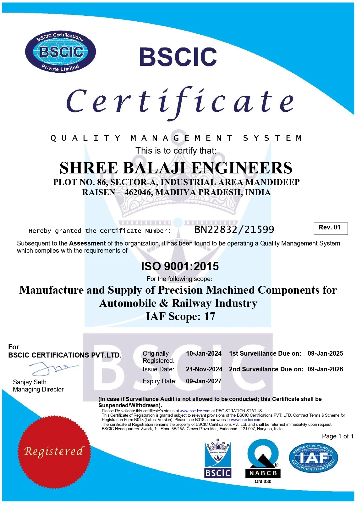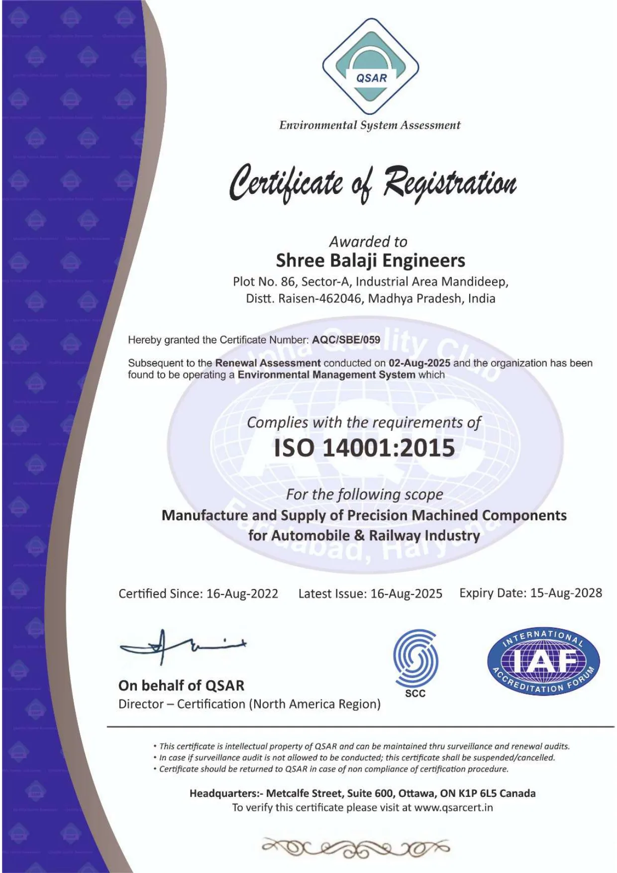 Shree Balaji Engineers, quality, safety, and sustainability are at the core of everything we do. Our operations are aligned with globally recognized standards to ensure consistent excellence in manufacturing and service.
